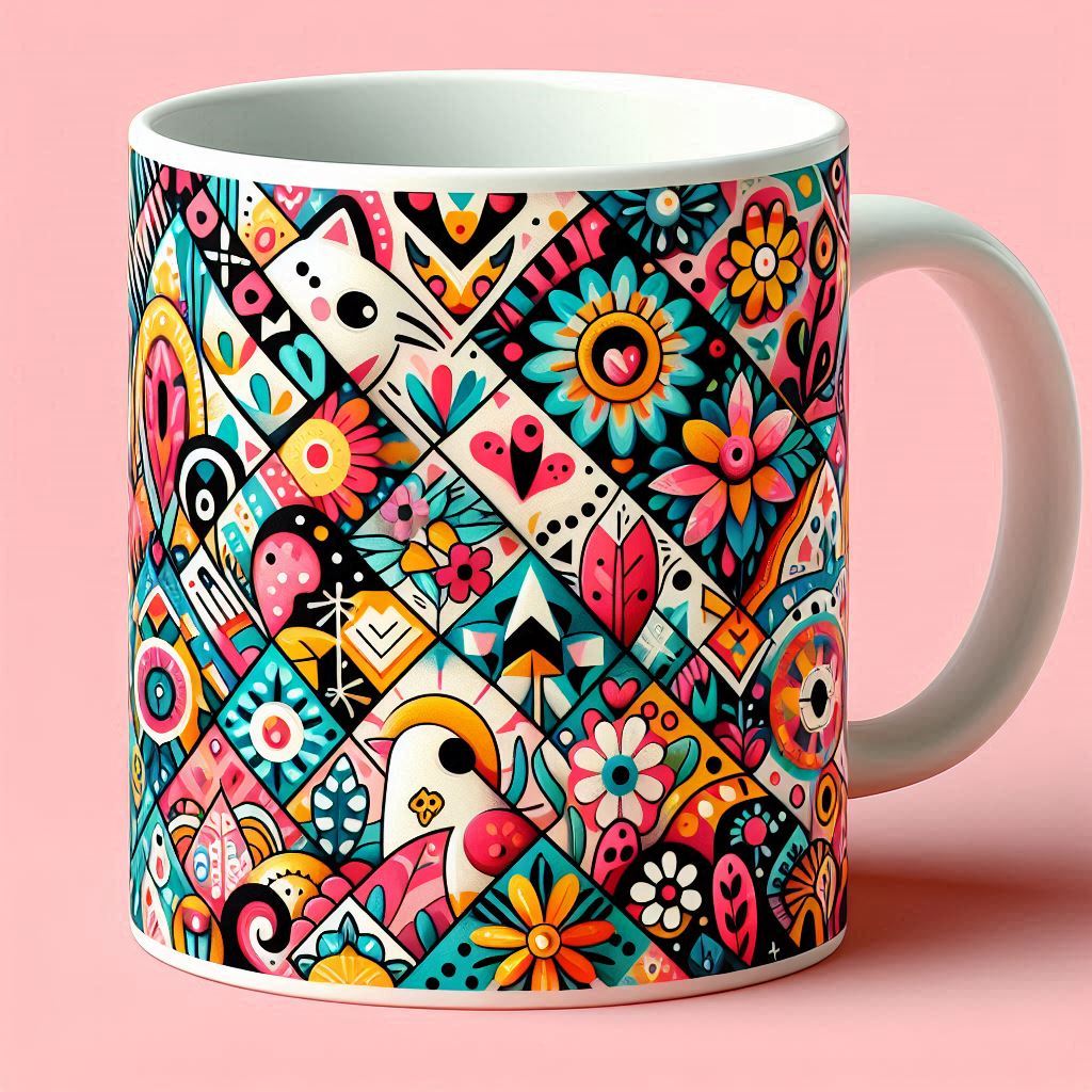 Step into a celebration of color with the Boho Bloom mug β a bold and beautiful blend of folk art, floral bursts, and whimsical shapes. With its kaleidoscope of bright hues and playful patterns, this mug adds instant joy to your morning rituals or afternoon breaks.