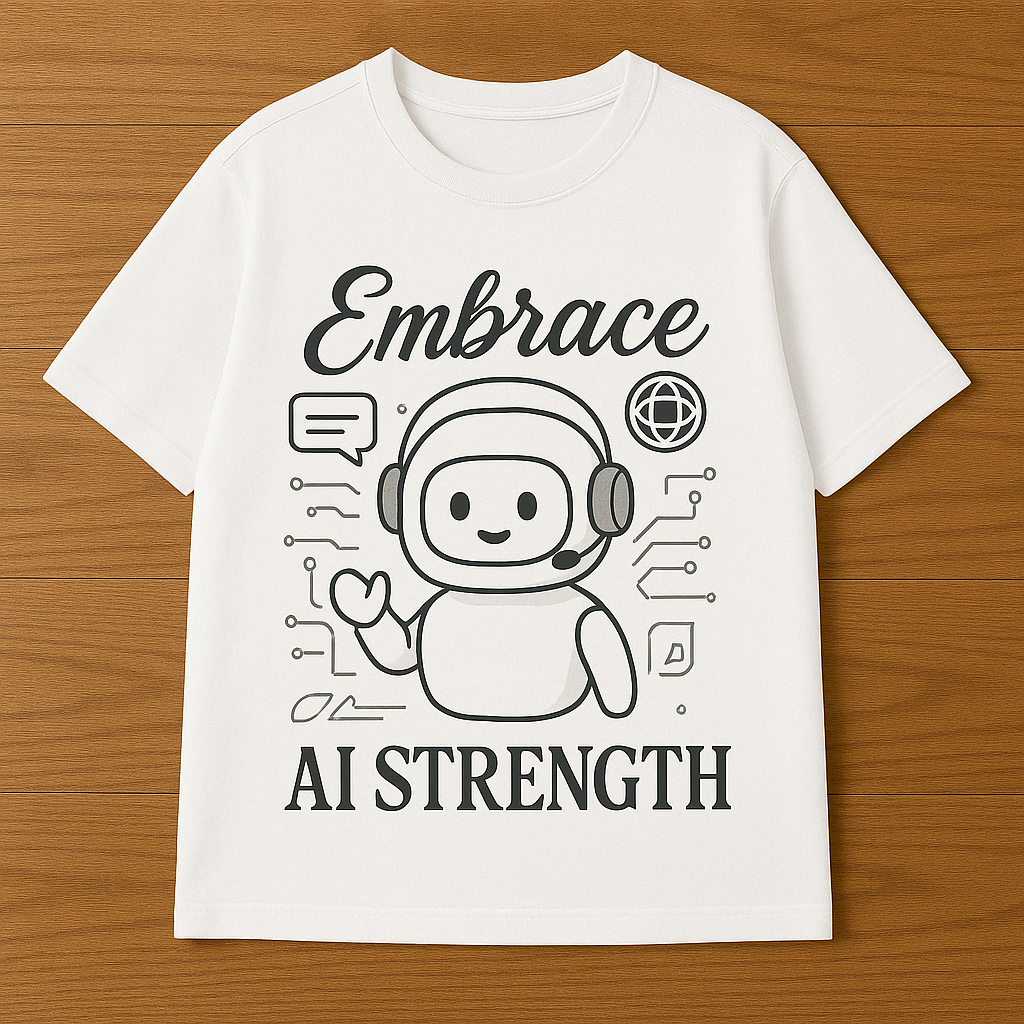 The future belongs to those who adapt and evolve. The "Embrace AI Strength" T-shirt is for innovators, thinkers, and tech lovers who see AI not as a threat, but as a powerful ally. Wear this tee as a bold statement of confidence in the intelligence of tomorrow.