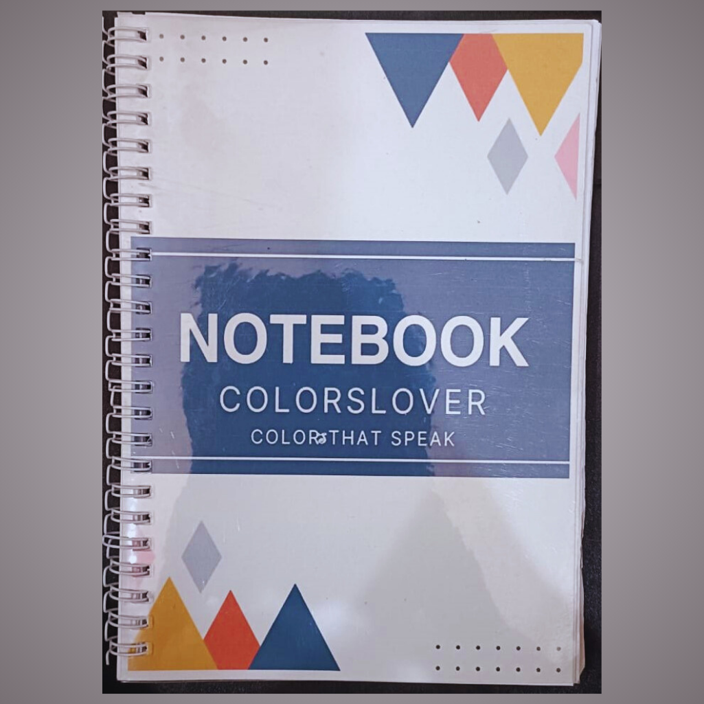 This vibrant handmade diary features a modern geometric design with colorful triangle accents and the phrase "Colors That Speak" on the cover. Crafted with care, it includes lined pages adorned with delicate leaf motifs and a “Date” header for easy journaling or note-taking. Compact and practical, it is slightly smaller than A4 size, making it ideal for carrying in a bag. Priced affordably at just 130, this spiral-bound notebook combines style, functionality, and a personal touch—perfect for everyday use or as a thoughtful gift.