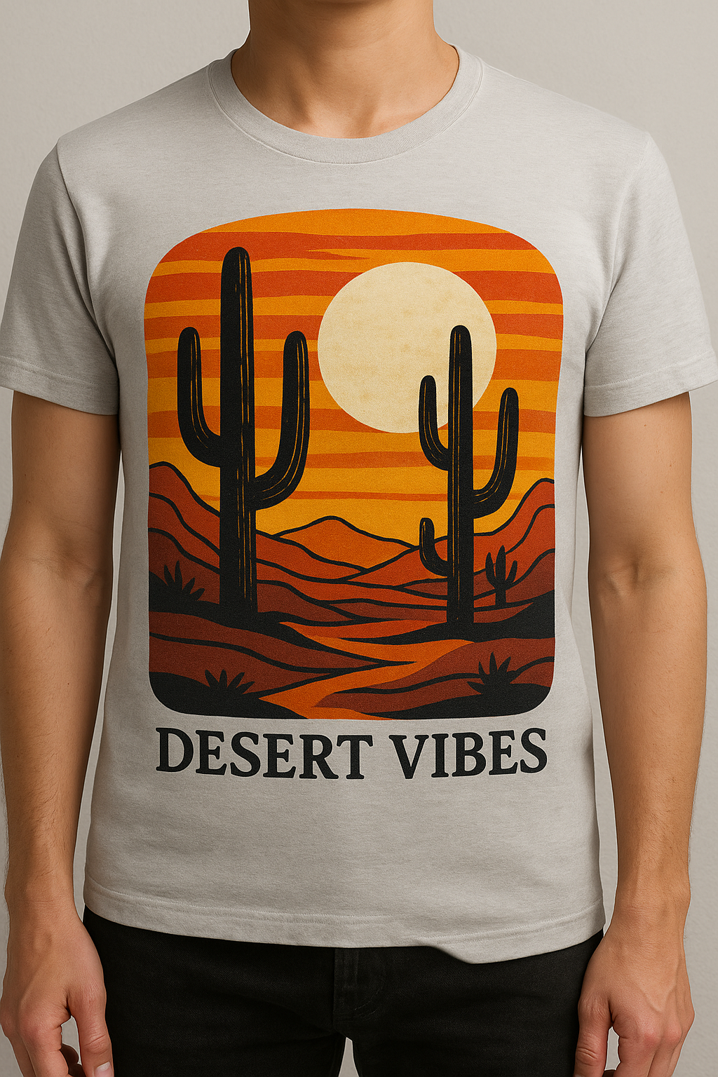 Sun. Sand. Soul. Our Desert Vibes T-shirt captures the mystique and calm of desert landscapes with a minimal yet bold graphic design. Think cacti, dunes, sunsets, and that timeless dusty orange glow β all brought to life in wearable art.