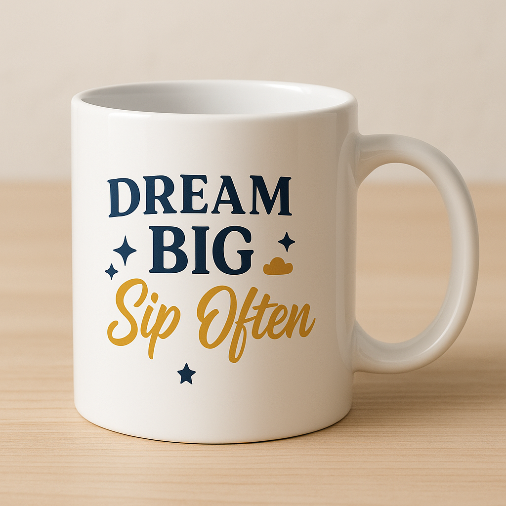 Fuel your mornings with inspiration! Our Dream Big mug, elegantly placed on a rustic wooden surface, is more than just drinkware—it's a daily reminder to chase your goals. Crafted from high-quality ceramic, this mug features a bold and motivating design that sparks ambition with every sip.