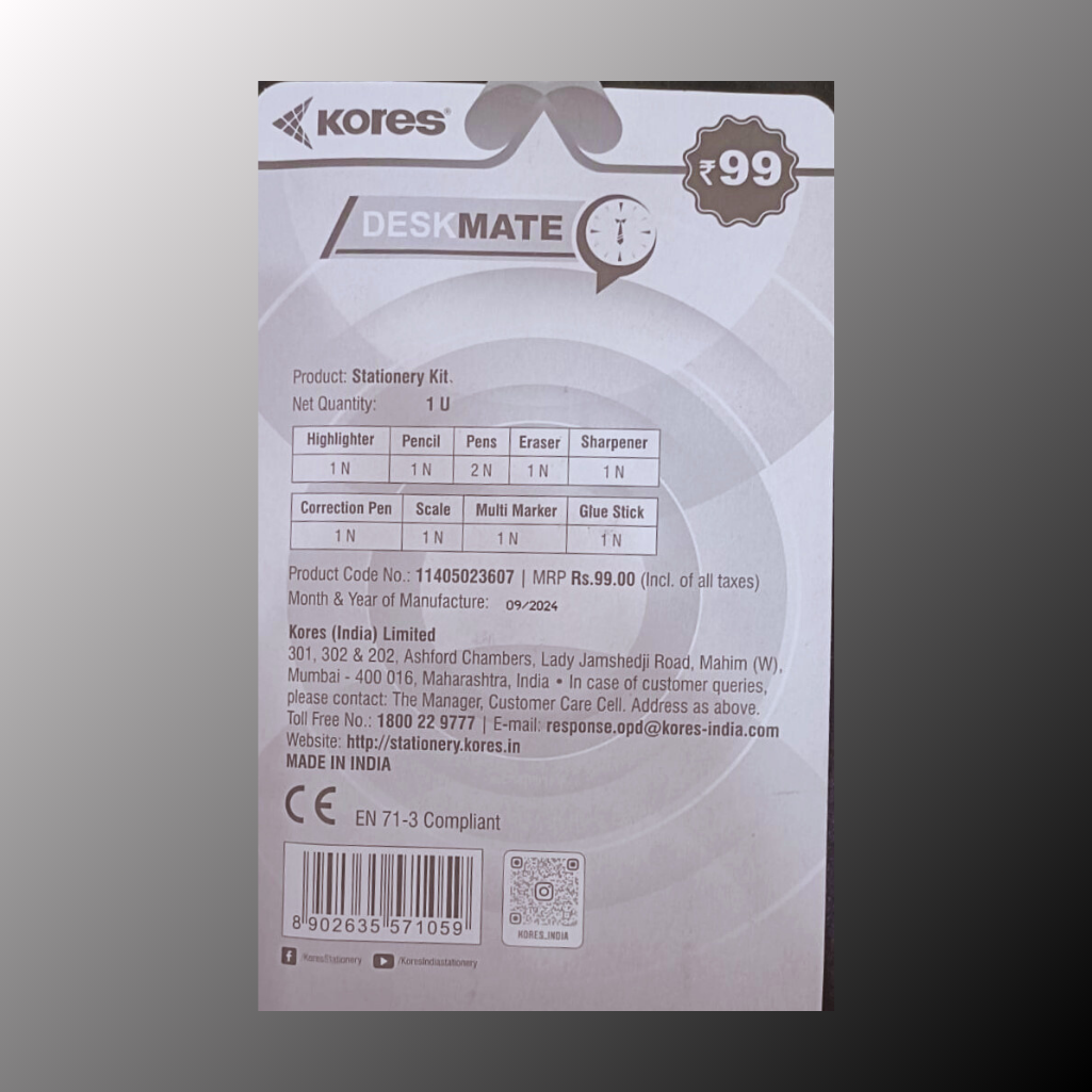 Here’s the description for the Kores Deskmate Stationery Kit priced at ₹99:
