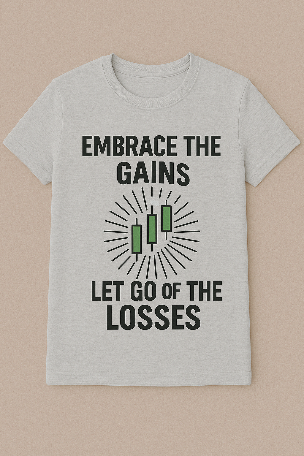 Success in trading isnβt just about profits; it's about handling losses with grace. The "Embrace the Gains, Let Go of Losses" T-shirt is designed for traders who know how to take the hits and keep moving forward, focusing on the bigger picture.
