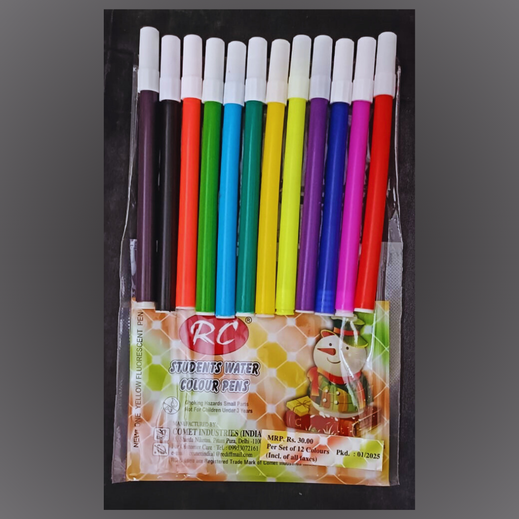 ποΈβ¨ Add a splash of color to your creativity with this RC Students Water Colour Pens set! π¨π« Each pack includes 12 vibrant shades, perfect for drawing, coloring, and school projects ποΈπ. These pens offer smooth, water-based ink for mess-free fun and safe use for kids π§π¦. With a cheerful snowman-themed pack, it brings joy to every little artist! ββ€οΈ