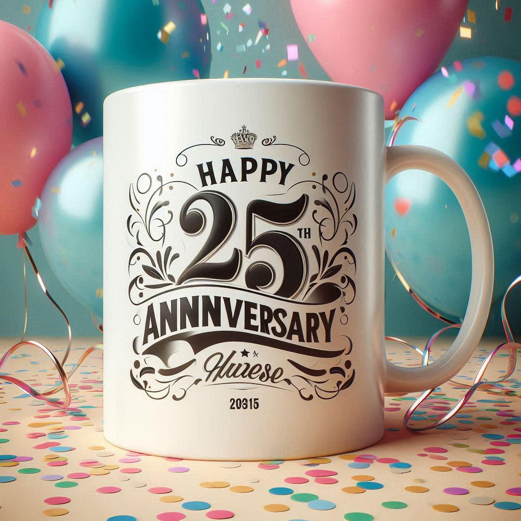 Celebrate 25 years of love, memories, and togetherness with this elegant Happy 25th Anniversary mug. A perfect tribute to a silver milestone, this mug blends timeless style with heartfelt emotion, making it a cherished keepsake for any couple.