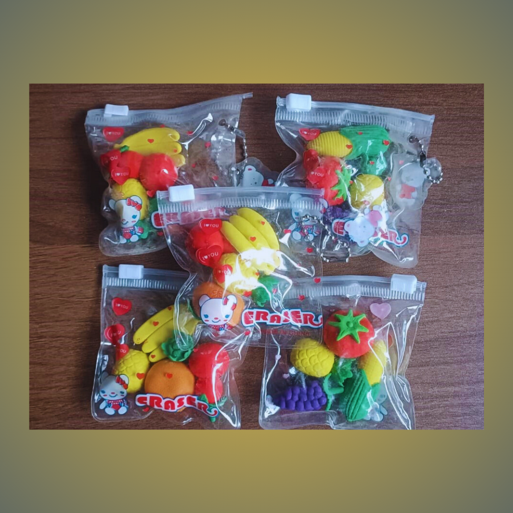 Make studying fun with these adorable fruit-shaped erasers, neatly packed in cute zipper pouches! Each set includes a variety of colorful and detailed erasers like bananas, strawberries, grapes, and more 🍇🍍. Perfect for kids’ stationery collections, return gifts, or just to add a playful touch to your desk! ✨✏️