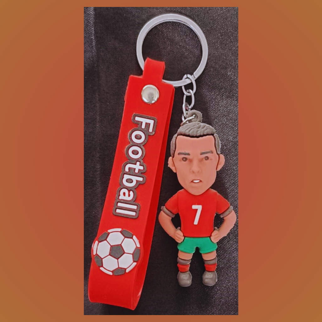 Celebrate your love for the game with this bold football-themed keychain featuring a miniature player in a red jersey marked with the number 7. The vibrant red strap displays the word "Football" alongside a printed soccer ball, adding sporty flair. Crafted from soft rubber and equipped with a sturdy key ring, itโs the perfect accessory for fans, players, or anyone who lives and breathes the beautiful game.