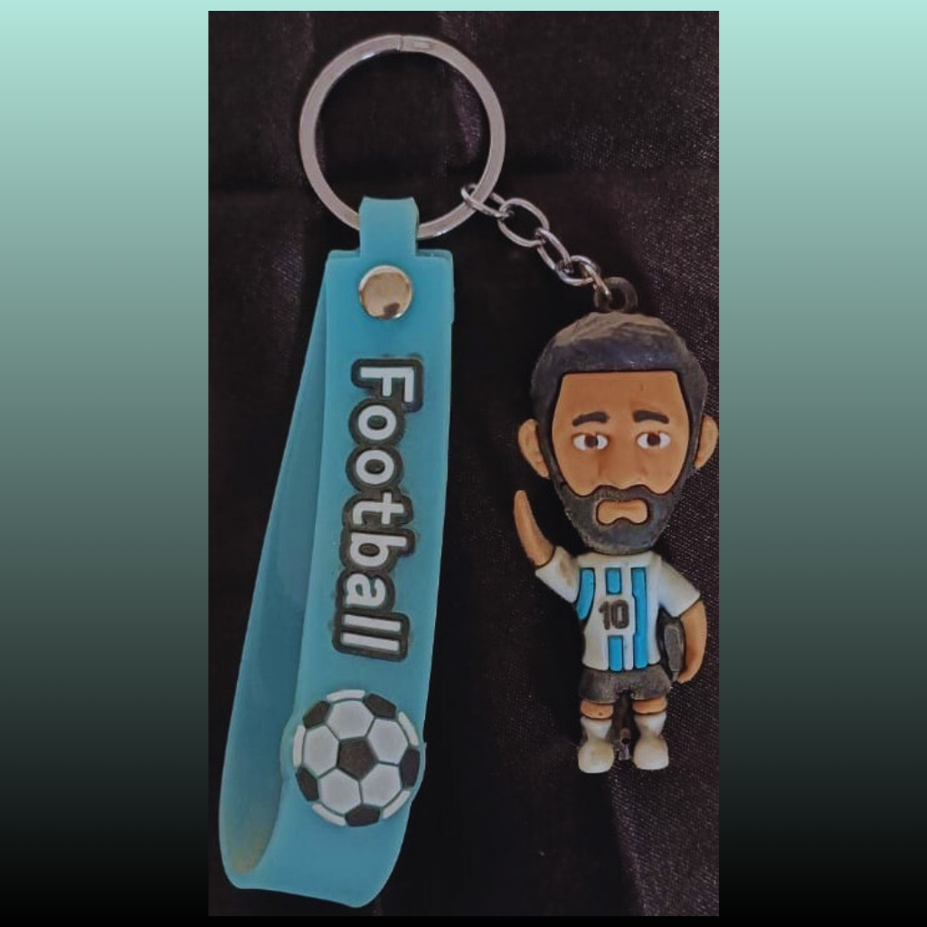 Show off your football fandom with this sporty blue keychain featuring a cartoon-style player in a sky blue and white striped jersey with the number 10. The flexible rubber strap boldly displays the word “Football” alongside a classic soccer ball graphic. Durable and eye-catching, this keychain is a great accessory for football lovers, collectors, or anyone who roots for their favorite team with pride.