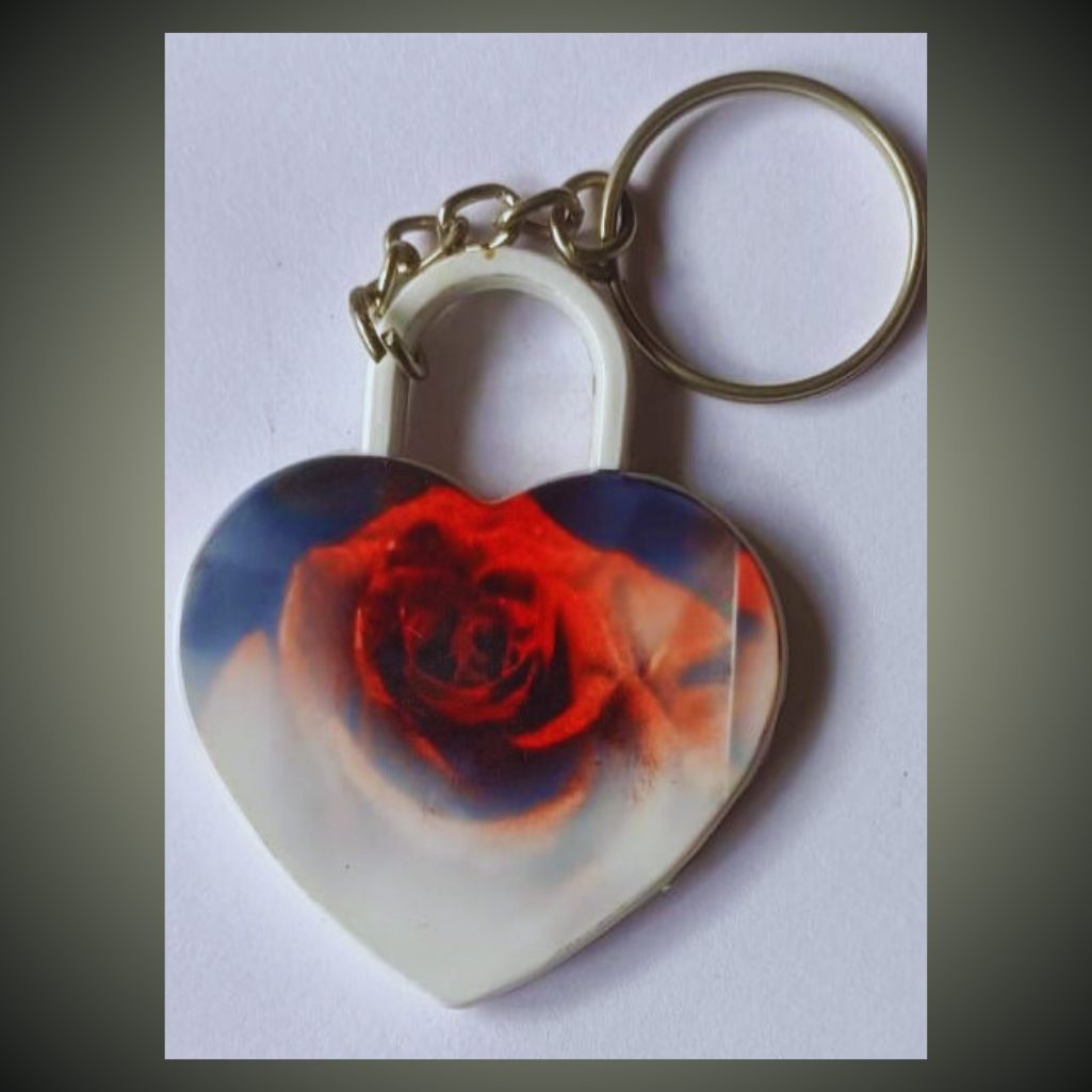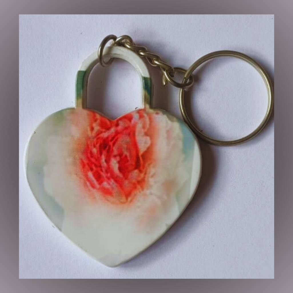 This charming heart-shaped polymer key chain features a stunning red rose print on one side and a delicate pink rose on the other, symbolizing love and elegance. Lightweight and durable, it's a perfect accessory for keys, bags, or gifts.