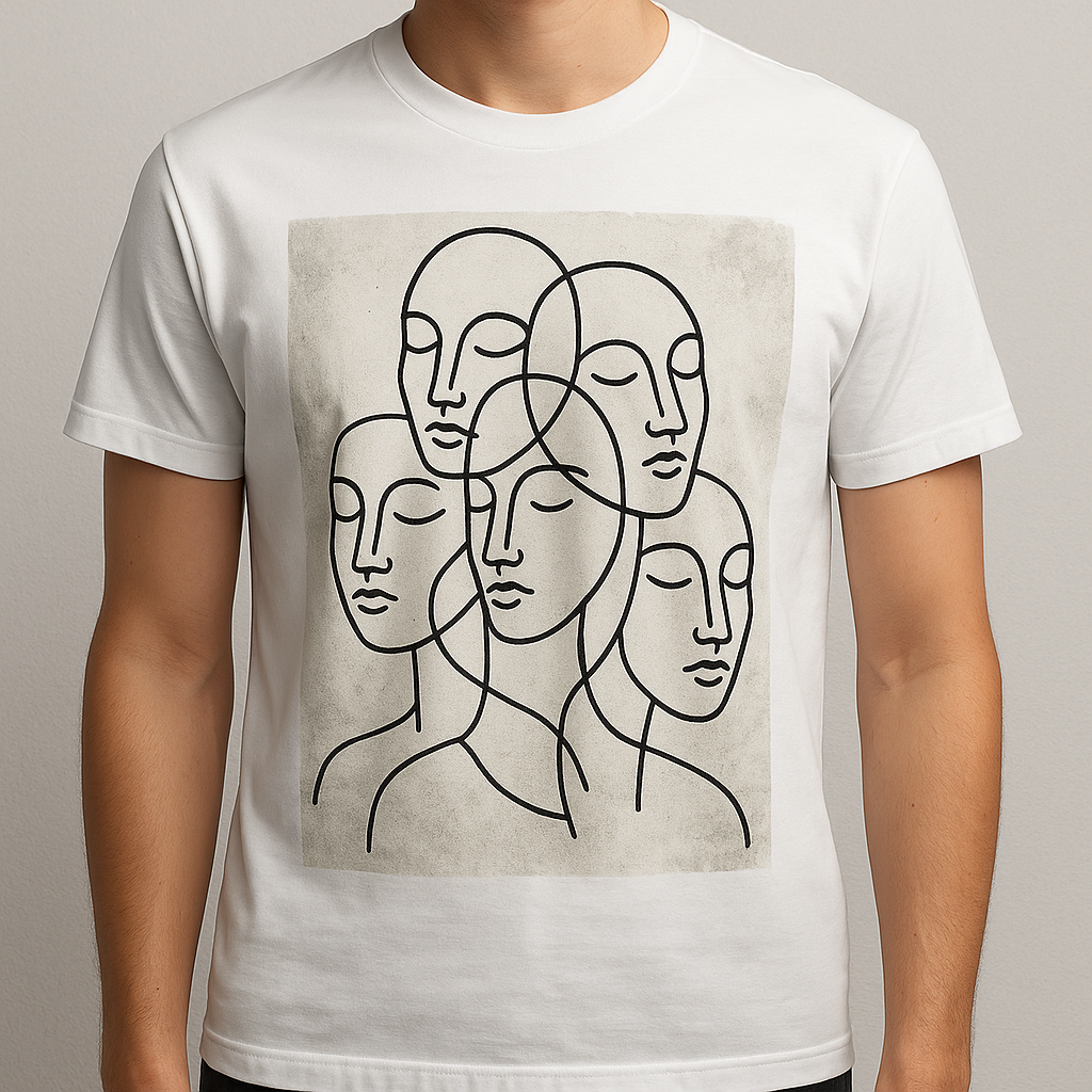 Celebrate individuality with art that speaks volumes. This Abstract Faces T-shirt blends modern minimalism and expressive line art—perfect for those who love bold style with quiet confidence.