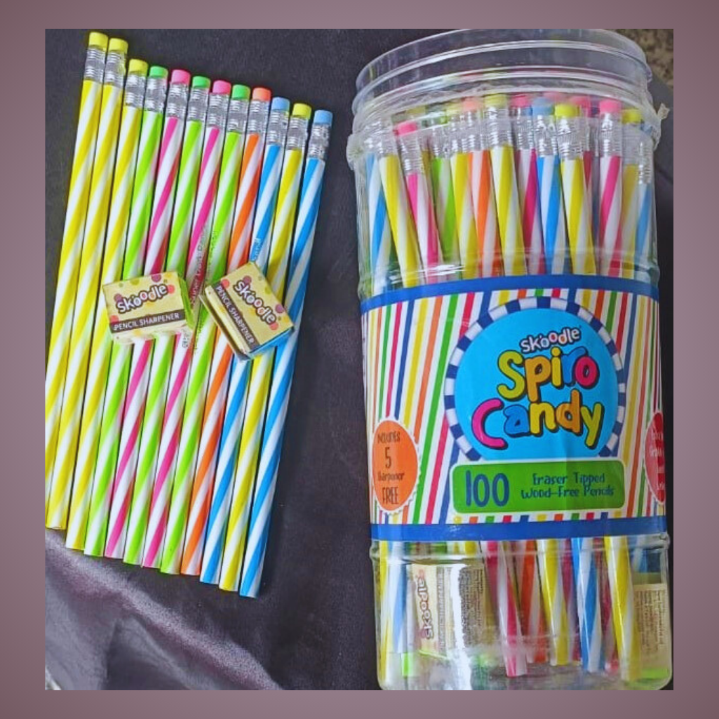 The Skoodle Spiro Candy Pencil Set ✏️ is a vibrant and fun pack of 100 eraser-tipped wood-free pencils that brings colour and joy to every writing session. Each pencil features bright candy-like stripes in shades of yellow, pink, green, orange, and blue 🍭🌈, making them a hit among kids and students. These eco-friendly pencils are designed for smooth writing and come packed in a durable, colourful jar. As a bonus, the set includes 5 free Skoodle sharpeners 🔄—perfect for school use or gifting. Priced at ₹400 💸, this cheerful combo is a great mix of utility and style, ideal for classrooms, art projects, and everyday writing needs.