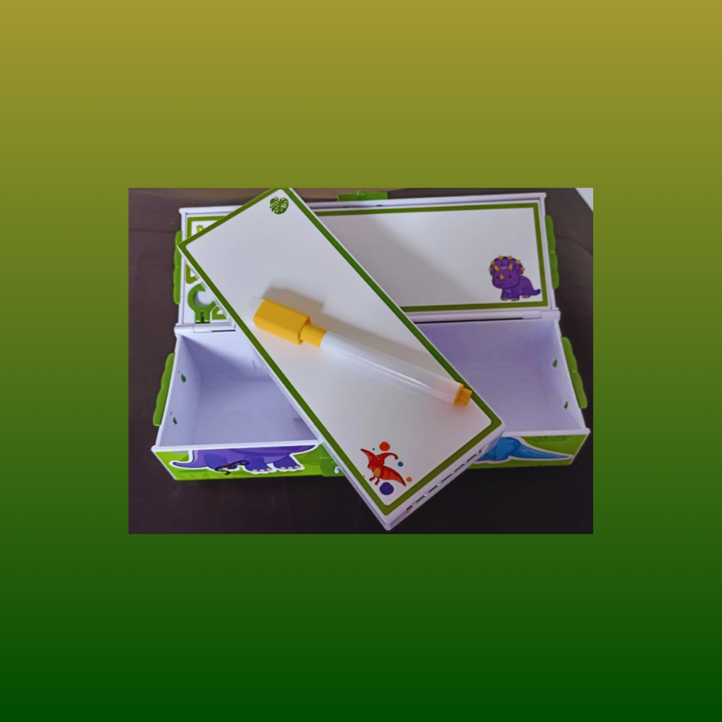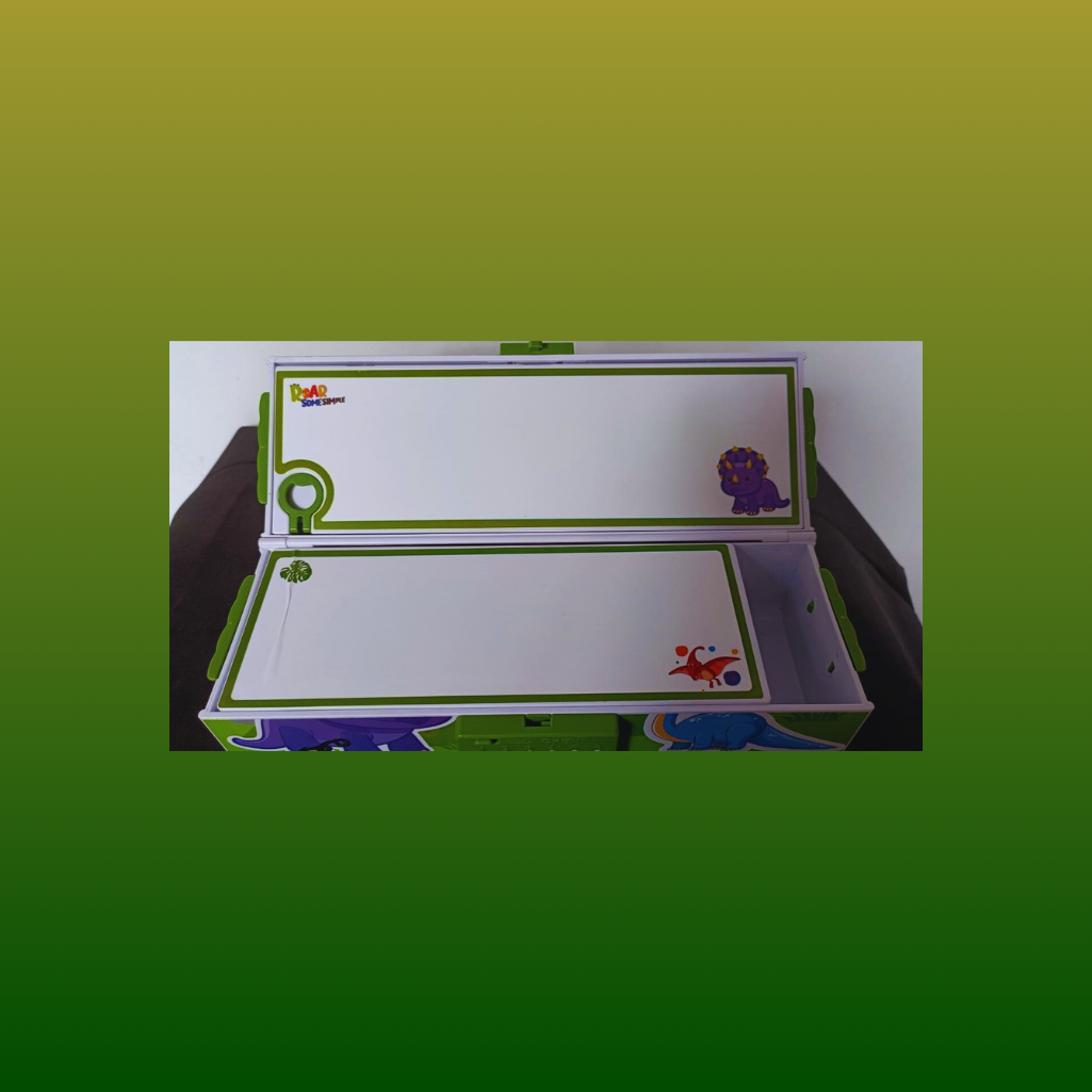 Inside, the box opens to reveal a mini whiteboard 🧽 complete with a dry-erase marker ✍️—perfect for doodling, writing quick notes, or solving math problems. The spacious compartments help organize pencils ✏️, pens 🖊️, erasers, and more, keeping everything neat and easy to find. Whether for school or home, this pencil box is a fun and practical companion that encourages creativity 🎨 and responsibility—all wrapped up in a dino-mite design! 🦕📦✨