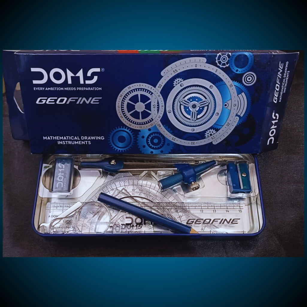 This is the DOMS GeoFine Mathematical Drawing Instruments set πβοΈβan excellent value-for-money kit priced at just βΉ75 πΈ! Packed in a durable blue metal box πΌ with a cool gear-themed design βοΈ, it includes all essential tools for geometry: compass, divider, ruler, protractor, set squares, pencil, eraser, and sharpener πβοΈπ§½. Ideal for schoolwork, exams, and precise technical drawings, itβs both stylish and functional ππ. A smart pick for students looking for quality and affordability in one sleek package ππ!