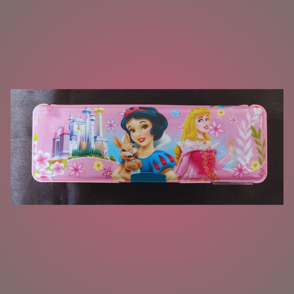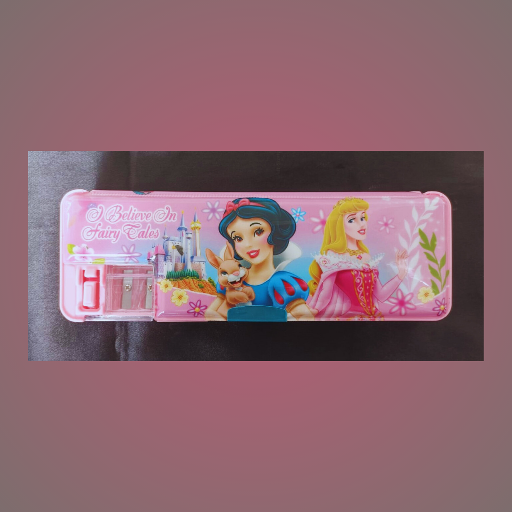 Inside, the case opens up to reveal a neat and organized space with slots for pencils, a built-in sharpener βοΈπ§, and a separate small compartment for erasers or paper clips. The combination of vibrant colors, durable design, and enchanting princess theme makes this pencil box both practical and fun! πποΈ