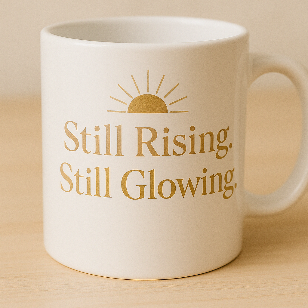 Celebrate your unstoppable spirit with the Still Rising, Still Glowing mug—a beautiful reminder that no matter what life throws, you keep shining and growing stronger every day. Perfect for those who embrace resilience with grace and glow from within.