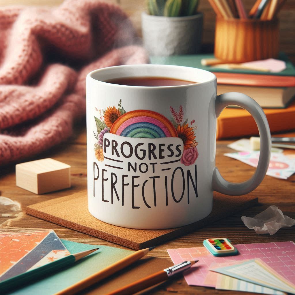 Celebrate every step forward with our Progress Not Perfection mug—your daily dose of encouragement to keep going, no matter what. This mug is a gentle reminder that growth matters more than perfection, perfect for those chasing goals with patience and persistence.
