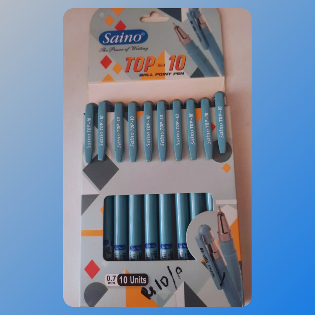 The Saino Top-10 Ball Point Pen Set βοΈ is your perfect companion for smooth and consistent writing every day! This pack includes 10 high-quality pens with a 0.7 mm tip that ensures clean and precise strokes, making it ideal for students, professionals, and office use πποΈ. The pens feature a stylish sky-blue design and a comfortable grip, reducing hand fatigue during long writing sessions. Priced at just βΉ99 πΈ, this set offers great value and performance, making it a must-have for anyone who loves to write with ease and style πΌπ.