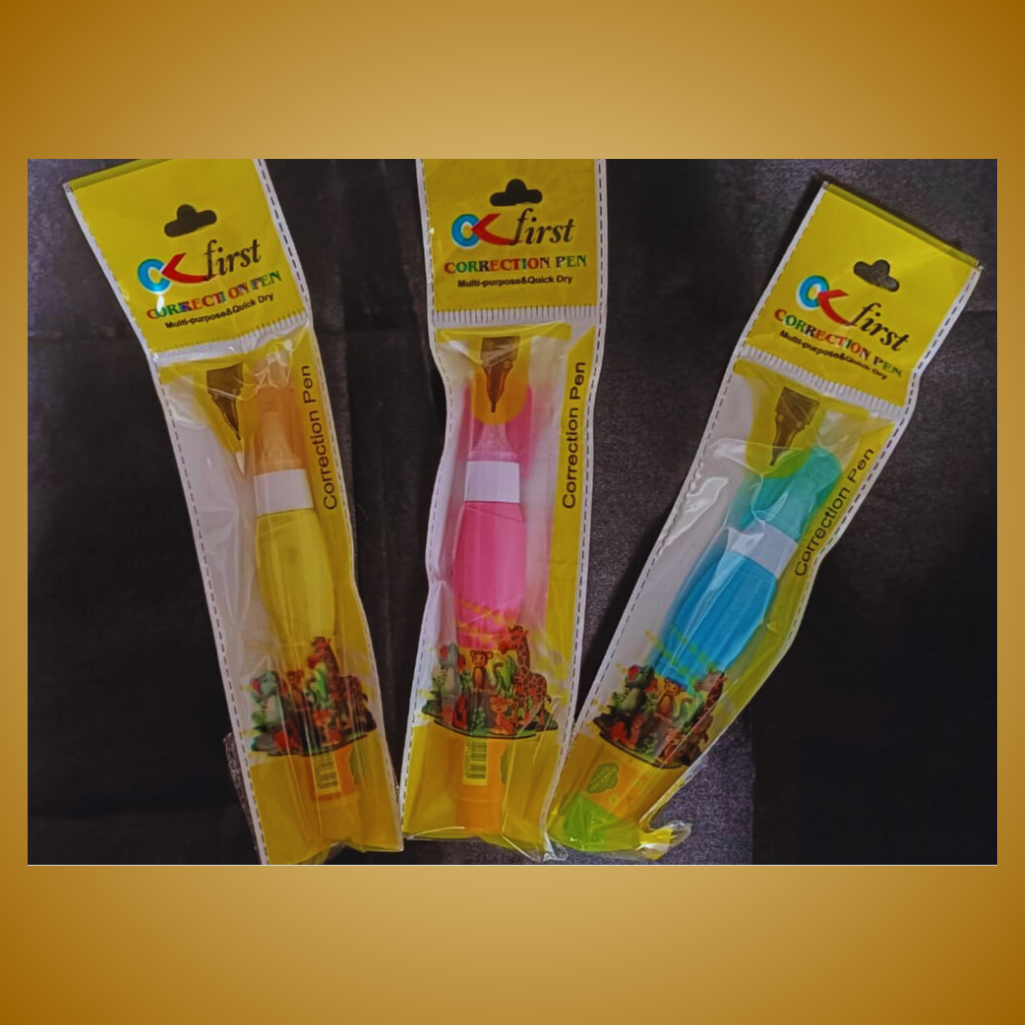 This set of 3 β¨ CK First Correction Pens β¨ is a handy and colorful addition to your stationery collection! Each pen features a quick-drying formula π that ensures neat, smudge-free corrections on paper. The precision tip ποΈ allows for accurate application, making them perfect for school, office, or home use. Available in bright shades of yellow, pink, and blue π, these correction pens not only do the job efficiently but also look fun and vibrant on your desk. At just βΉ90 for the set, itβs a great deal for anyone who loves to keep their work clean and professional β π.