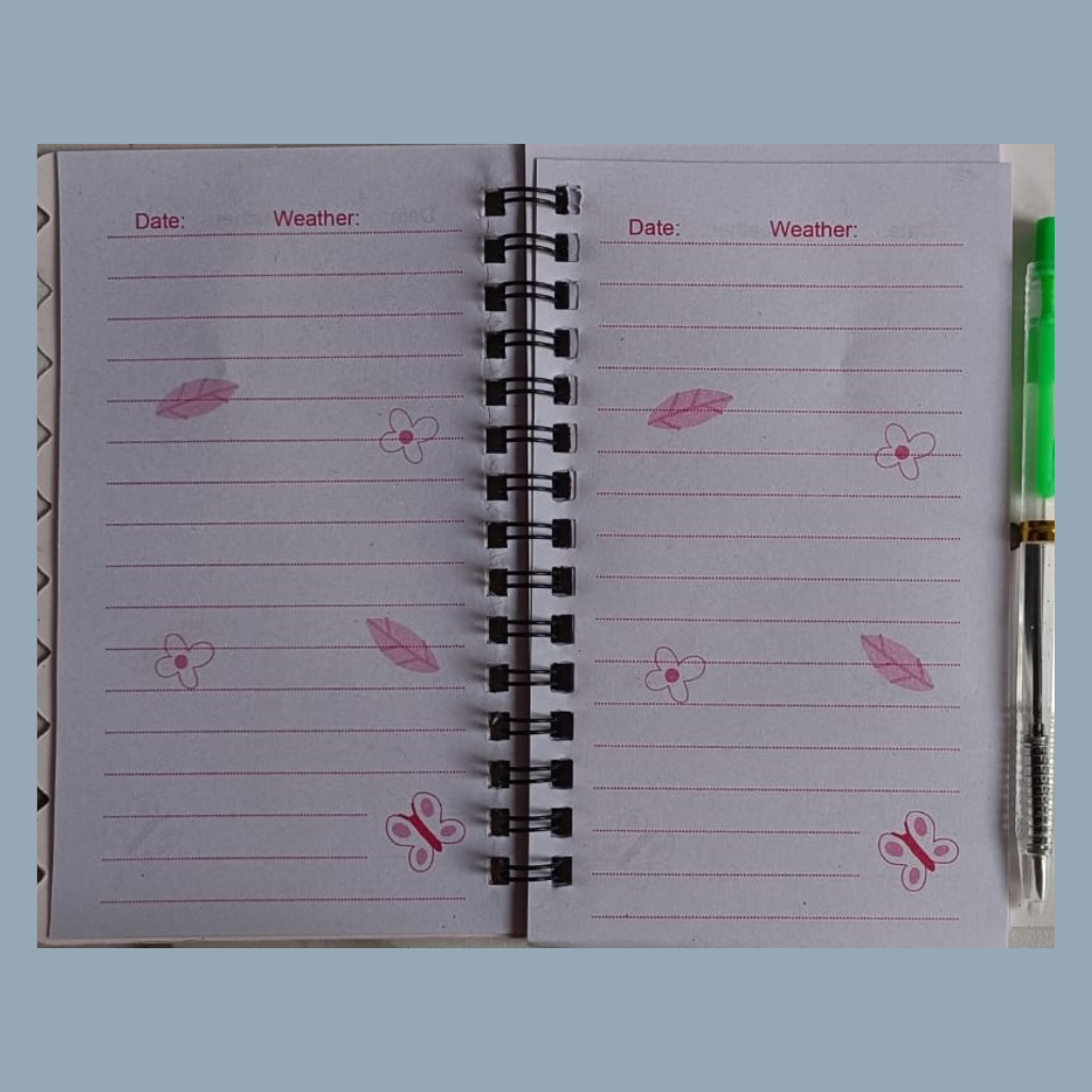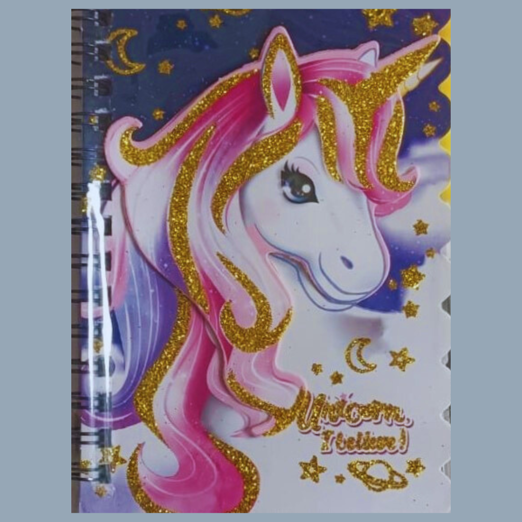 Add a touch of magic to your day with this delightful Unicorn Glitter Diary, priced affordably at just ₹100. Featuring a vibrant, glittery unicorn on the front cover and the cheerful phrase “I ❤️ Travel,” this diary is perfect for kids and unicorn lovers alike. Inside, the pages are lined and decorated with cute pink illustrations of leaves, flowers, and butterflies — plus space to note the date and weather for journaling or daily writing. With a sturdy spiral binding and a colorful pastel design, this diary is both fun and functional — an adorable addition to any stationery collection.